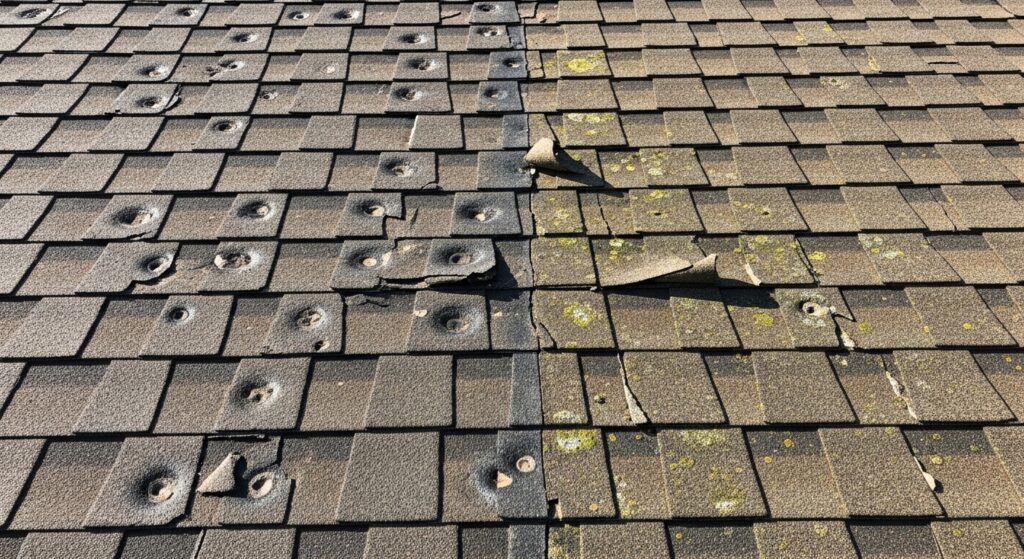 ⚡Emergency storm damage repairs for roofs damaged by hurricanes and hail.